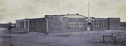 The bond issue passed and new classrooms were added to the only building on campus. Notice the the change in brick color in the wing on the left. These two rooms and the restroom/shower were added in the summer of 1929. The central raised roof covered the school auditorium--a central room in the building which was used each day during Chapel exercises.