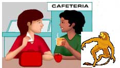 Around lunchtime your monkey will get very hungry and wonder where on earth you are. When the principal isn't looking, he will sneak out of the door and race to find you. When your monkey finds you in the cafeteria, he will be very excited. He will start jumping from table to table, messing up everyone's tray. All of your friends will get very mad at you.